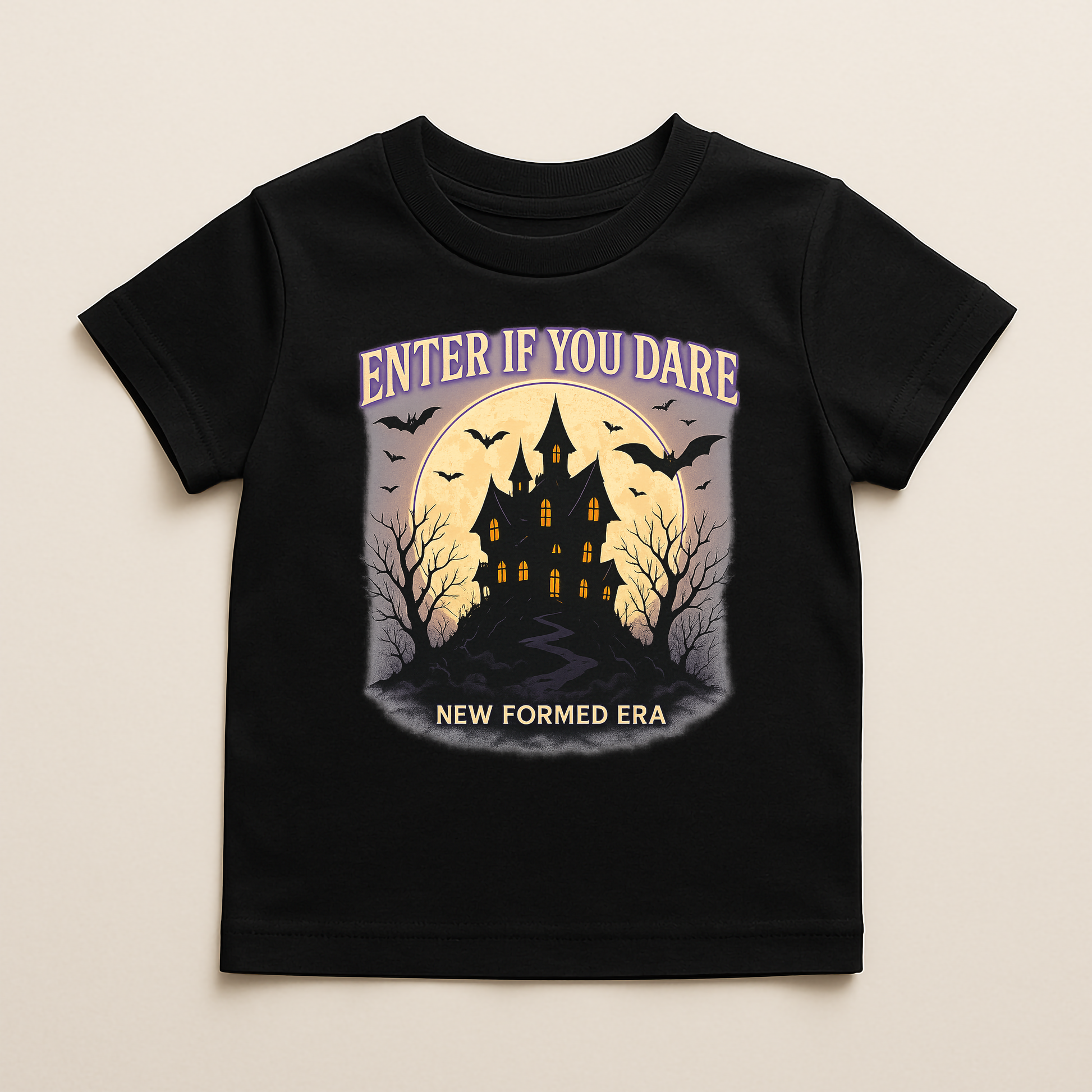 Step into spooky season with the Enter If You Dare Kids Halloween T-Shirt by New Formed Era!